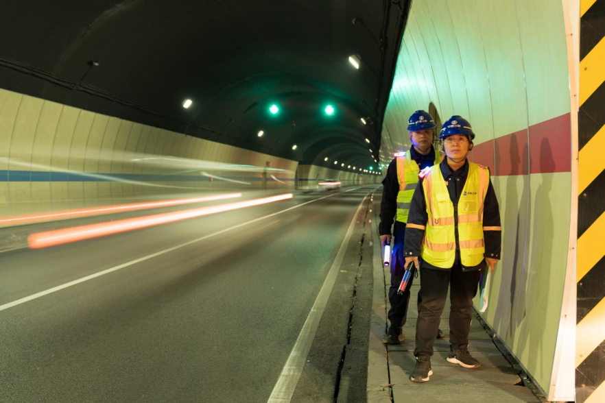 ▲ 工作人員在三峽專用公路隧道內巡檢