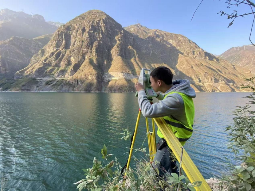 ▲ 工作人員正在進行溪洛渡庫區(qū)河道觀測設(shè)施設(shè)測專題工作