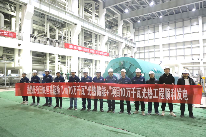 2025年2月,沖刺光熱發電的“最后一公里”戰役打響。車玉新負責熔鹽系統調試,這個被稱為光熱電站“心臟”的系統,溫度控制直接影響發電效率。為確保升溫穩定,他連續一周守在設備旁,每小時記錄一次溫度數據,連吃飯都盯著屏幕,生怕錯過一絲影響光熱轉換的溫度波動;二月底的凌晨兩點,熔鹽異常降溫,他顧不上穿外套,戴上安全帽,立即趕往熔鹽電伴熱配電間,仔細檢查線路,出來時,額間泛著細密的汗珠,卻笑著說:“還好趕上了,沒讓光熱發電‘斷了檔’。”2月24日至3月20日,熔鹽系統完成二次升溫;3月22日,主廠房換熱系統首次注鹽成功;3月30日,汽輪機一次沖轉發電成功,機帶負荷運行83分鐘,累計發出電量10598度——標志著整個工程取得重大進展,為電站的投產發電奠定了堅實基礎。這一刻,車玉新和同事們相擁而泣,淚水混著臉上的沙塵,成為記憶中揮之不去的動容情節。