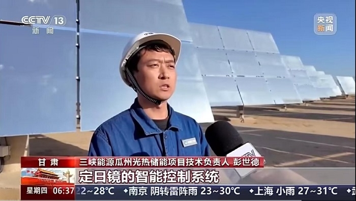 2025年10月1日至3日,在新中國成立76周年之際,央視多個頻道將目光聚焦甘肅瓜州——CCTV13《日出東方》欄目直播光熱電站全系統調試,26954面定日鏡同步轉向,用光影拼出“祖國萬歲”的圖案,晨光中的“雙塔”如巨人般守護著這片光熱熱土;《新聞直播間》推出專題報道,李勇、翟強等一線員工黝黑的臉龐、堅定的眼神,成了“光熱奮斗者”的生動注腳。